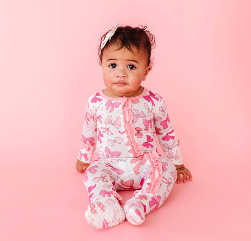 Macaron + Me Pink Bows Ruffle Footsie