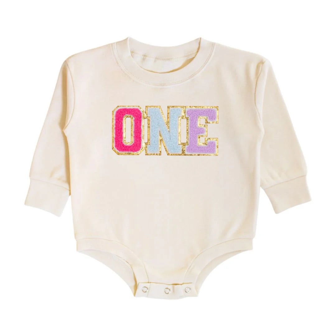 First Birthday Patch Long Sleeve Romper - Baby